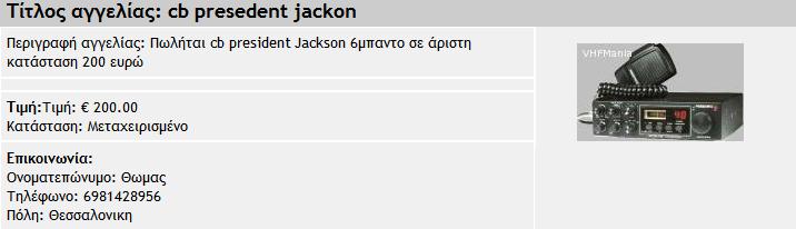ΠΩΛΗΤΑΙ CB PESEDENT JACKSON