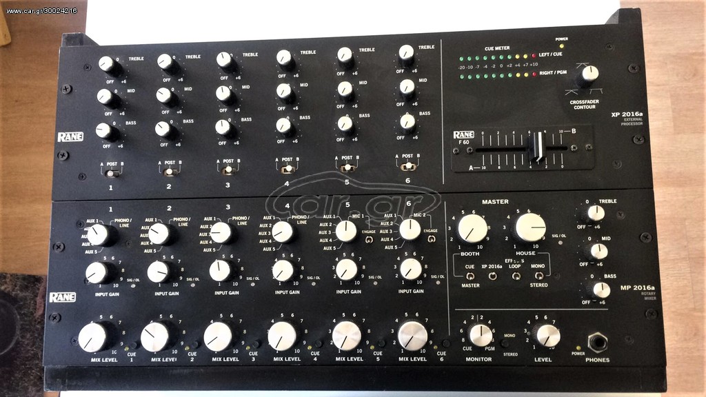 Σε άριστη κατάστασηMP 2016a Features:? Six stereo Input channels? Four dedicated stereo Phono / Line preamps? Two dedicated Mic / Line preamps with: ? Gain trims ? 2-band Tone controls ? Engage switches ? Booth ducking? Five stereo Auxiliary Inputs? Input Gain controls for level matching? Switchable Effects Loop ? Booth Output with Master / Cue source switch? Separate Pre- and Post-effects Tape Outputs? Master Accelerated-Slope?, full-cut, 3-band Tone controls? Audiophile / Studio sound quality; Uses highest-quality ALPS pots? Split Cueing with high power headphone amplifier XP 2016a Features? Active-Crossfader? with full-range Contour control? A-POST-B Crossfader assign switches ? Stereo Master / Cue Meter with peak hold? Six channels of stereo, Accelerated-Slope?, full-cut, 3-band Tone controls.XP 2016Adds Active Crossfader? with full-range Contour control; Crossfader assign switches.Adds Accelerated-Slope? 3-band tone controls on each input channel.Adds Master/cue metering.Single cable connects XP 2016a to MP 2016a.