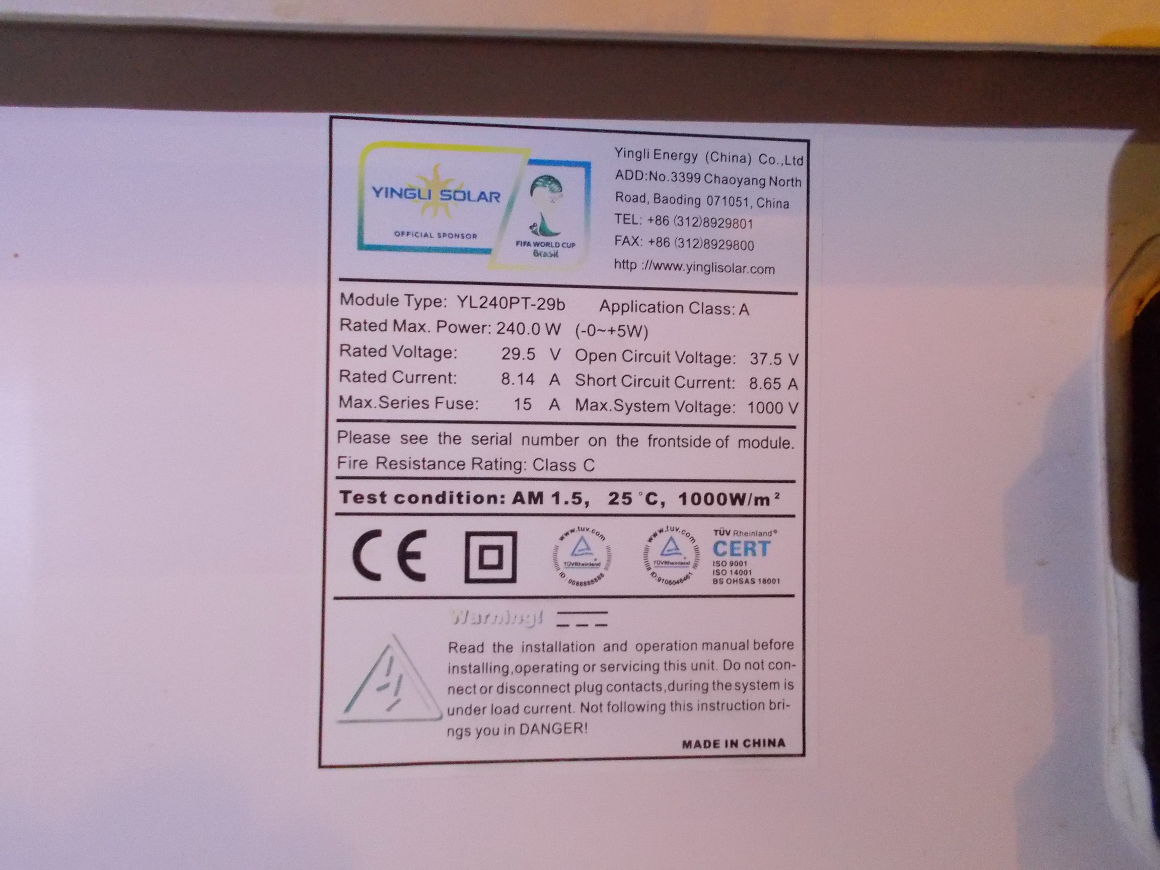 ΦΩΤΟΒΟΛΤΑΙΚΑ μεταχειρισμένα, YINGLI 240 W 1.68 μ. ύψος και 1 μ. πλάτος σε άριστη κατάσταση, πολυκρυσταλλικά 60 cells τιμη 100?